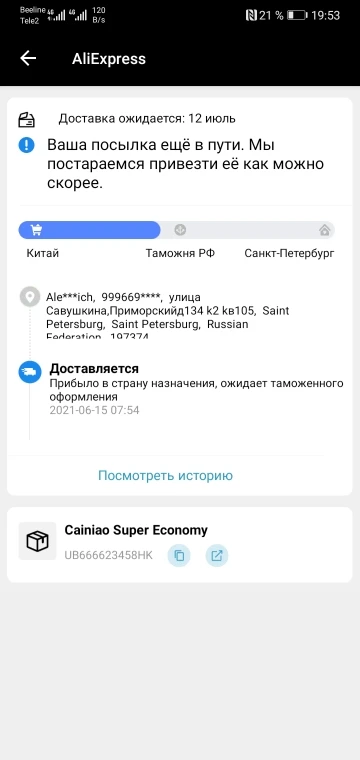 Страна: RU Color: 8 Доставка: Cainiao Super Economy 21.06.2021