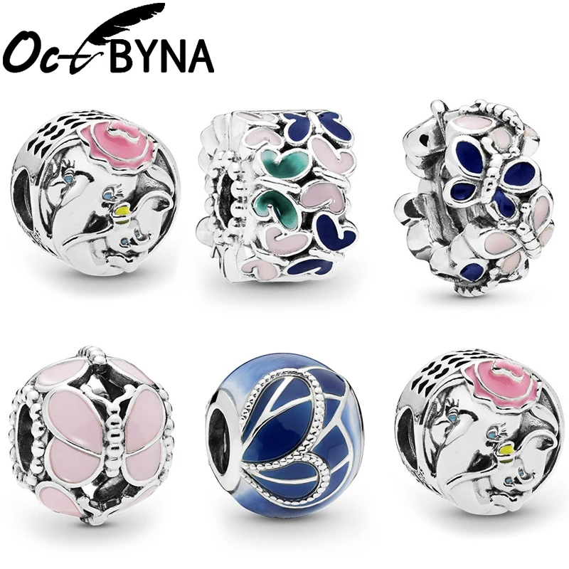 Octbyna цветные бусины в виде бабочек и цветов, сделай сам, оригинальные подвески для браслетов Pandora, безделушки для женщин, изготовление ювелирных изделий, подарки