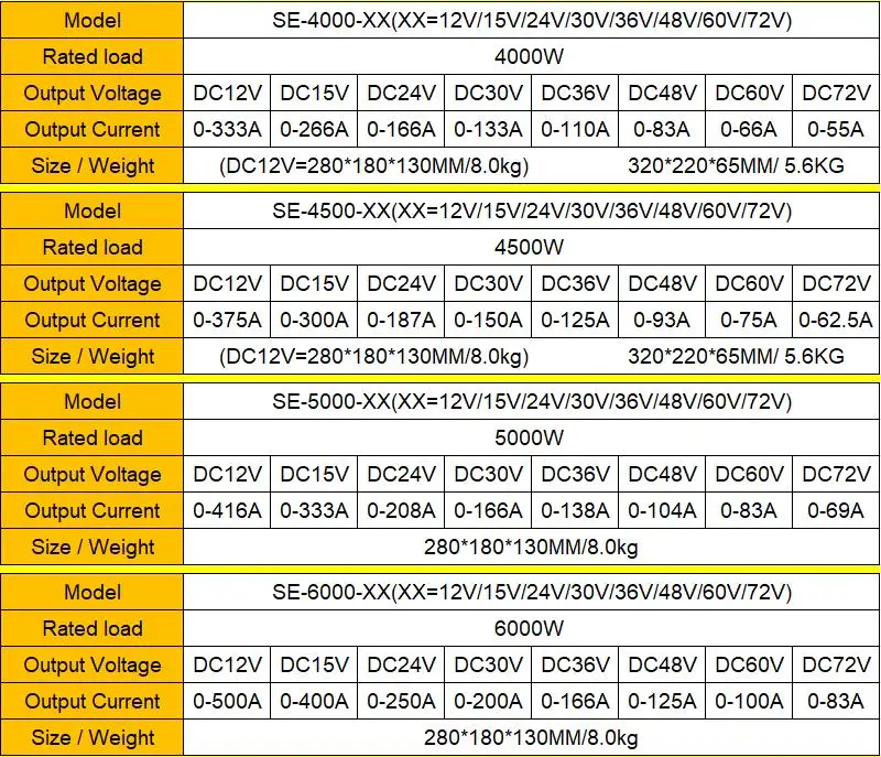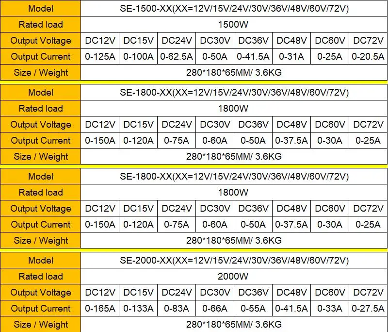 Номер моделиSE-XXXX-(12 15 24 30 36 48 60 72)
