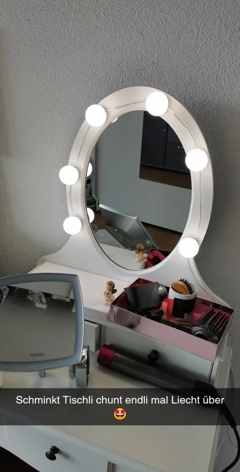 5. Крепится на поверхность зеркального стекла, дерева, силикона и металла с помощью пасты 3M. Длину провода можно отрегулировать, поворачивая провод. Его можно установить «сделай сам» на туалетный столик с подсветкой и украшением.