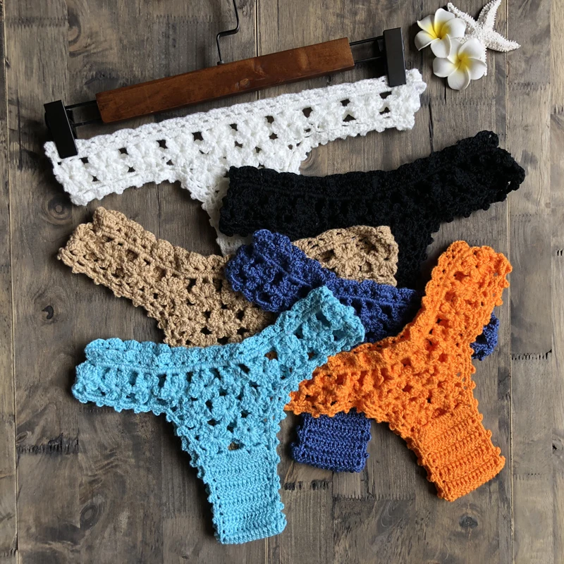 Женский уникальный сексуальный купальный костюм ручной работы, вязаный купальник бикини, с вырезами и низкой талией, треугольный, купальные плавки knicker
