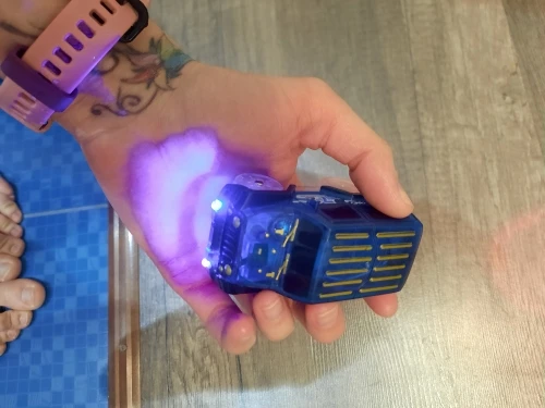 Товар соответствует описанию, повреждений нет! Доставка до москвы практически 2 месяца. Работает от одной пальчиковой батарейки!