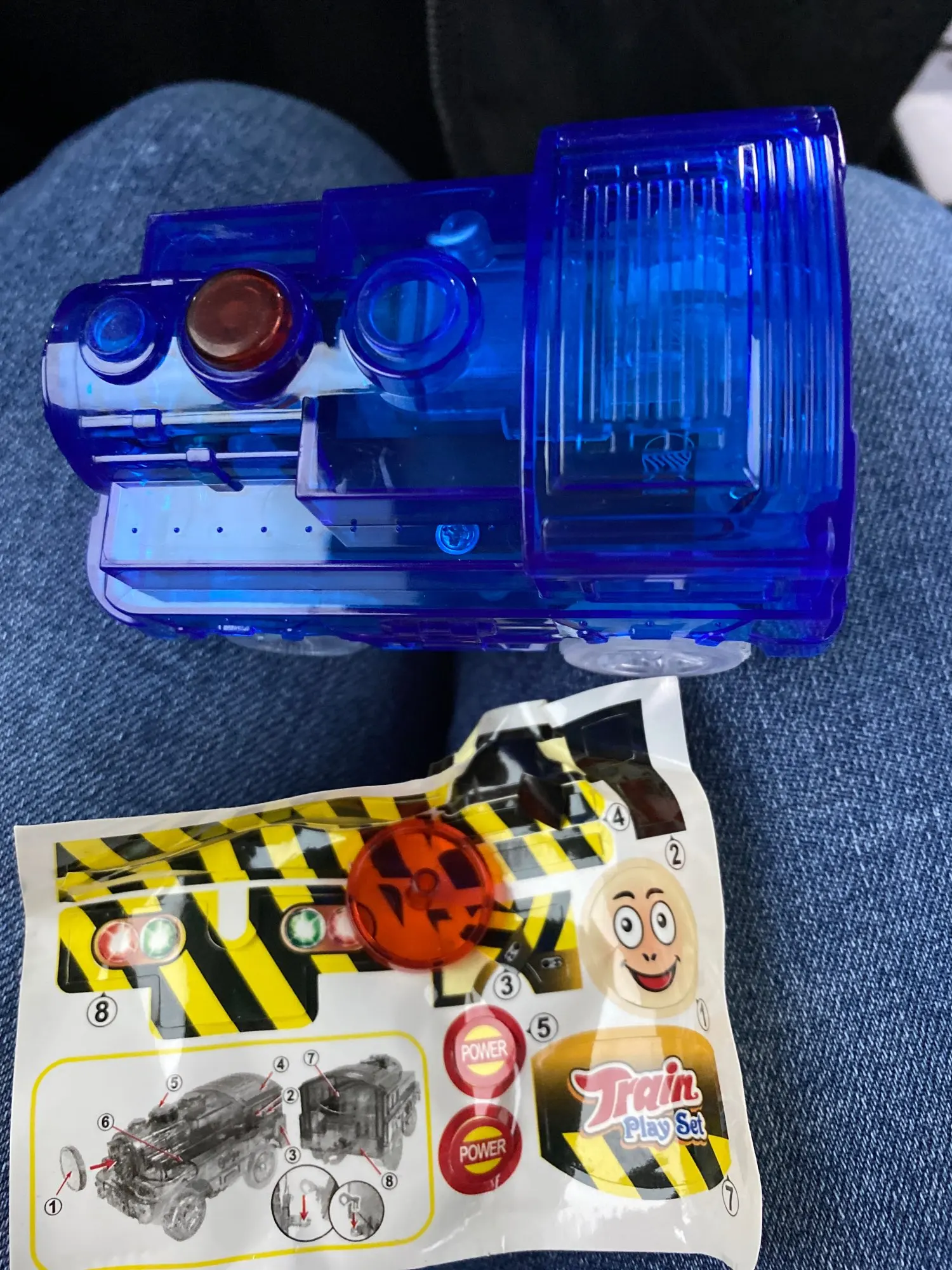 Паровозик на батарейках АА (пальчиковые 2 шт.) Широкий и низкий (на картинке выглядит выше, но это не "минус") Вместе с паровозиком был комплект наклеек (на фото они приклеены на игрушку ) Гоняет как угорелый, порой с дороги вылетает Из минусов: посылка шла 2 месяца и наша почта пальчиком проковыряла дырочку в пакете (наверно хотели батарейки положить)