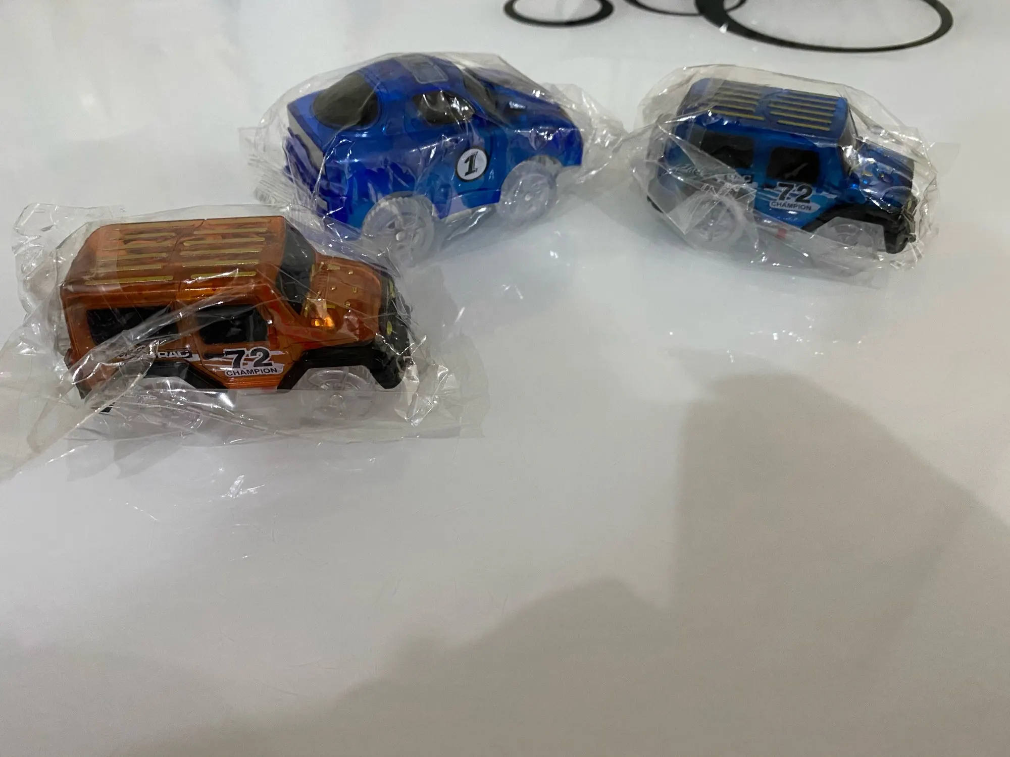 машинки работают. доставка ~3 недели до НСК. У машинок нет возможности ездить по кольцу (нет крепления на дне). Из-за высокого переднего бампера иногда выпрыгивает с дороги. в остальном хорошие машинки.