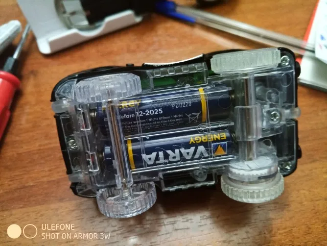 Отличная машинка , работает на одной батарейке АА. Качественно сделана .