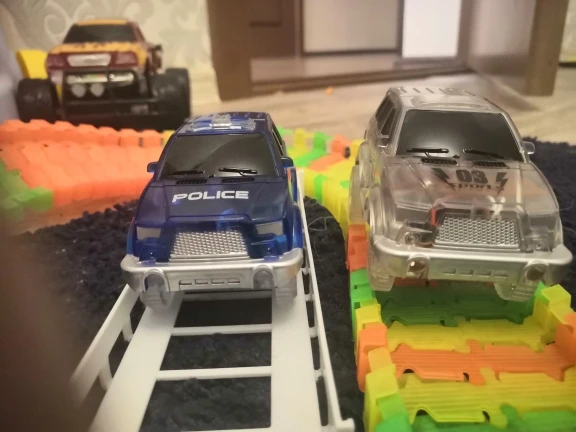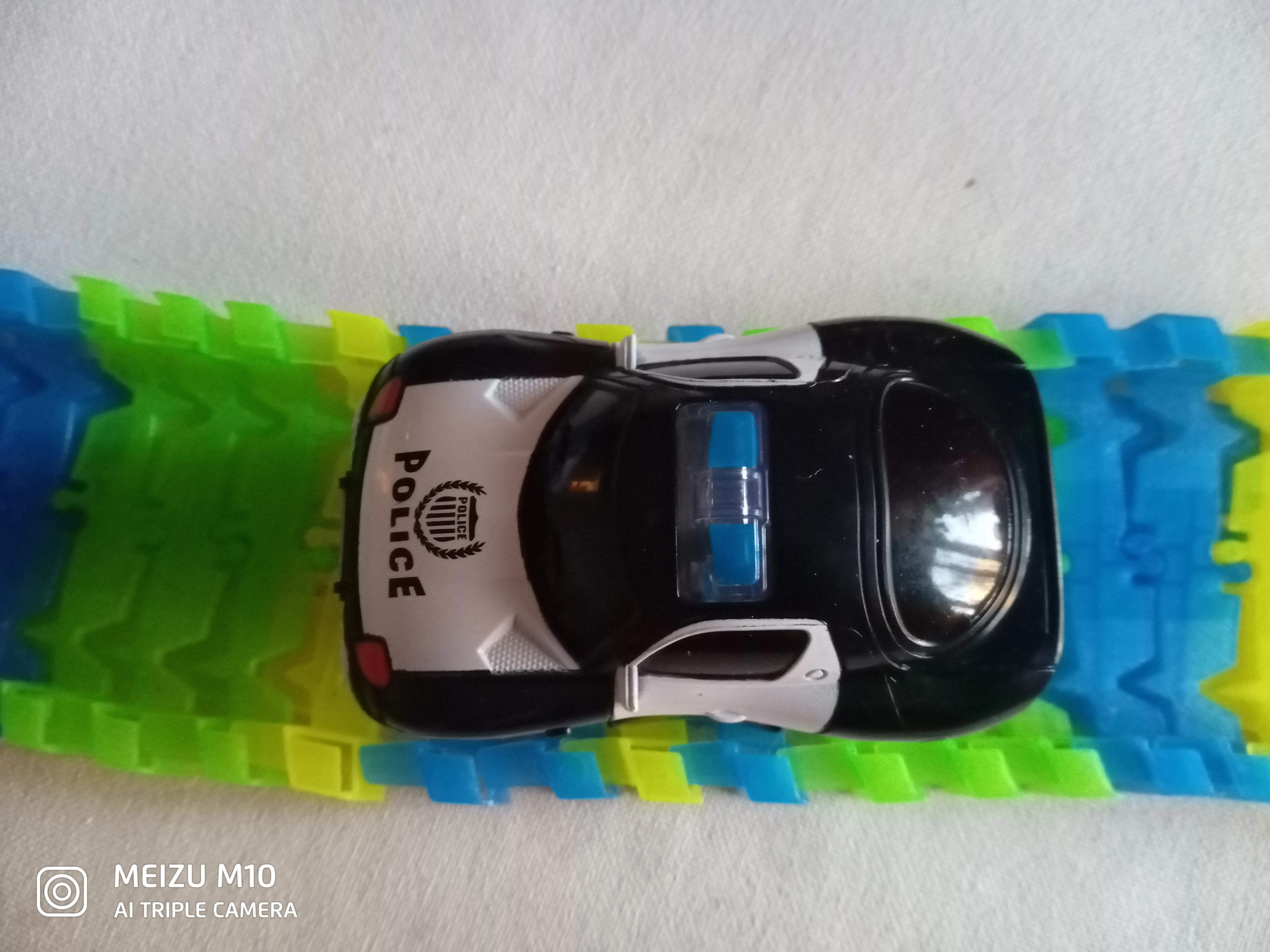 Маленькая машина застревает в цепи. Моя ошибка в том, что не учитывая измерения, но полиция делает все отлично. Тем не менее, как малыш выходит с трека, когда он получает удар сзади, полицейский эффект очень крутой, как гонение. Очень доволен покупкой, конечно, повторю.