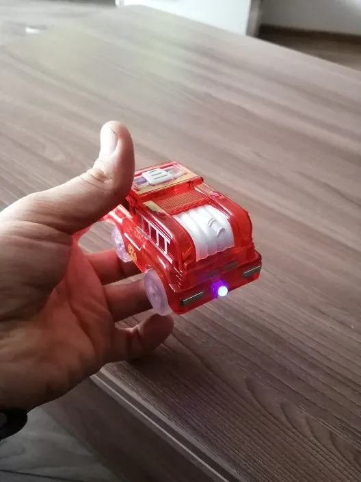 Отличная машинка для трека, ребенок 2 года играет ей с удовольствием, работает от батарейки, светится и едет)