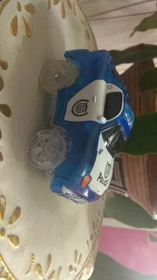 шустрая машинка, соответствует описанию, работает от одной пальчиковой батарейки, которая в комплект не входит, глаза светятся красными и синими огнями попеременно, продавцу большое спасибо, доставка более двух месяцев, рекомендую к покупке