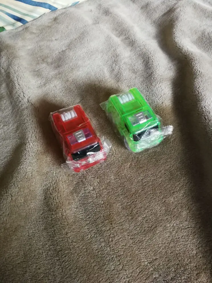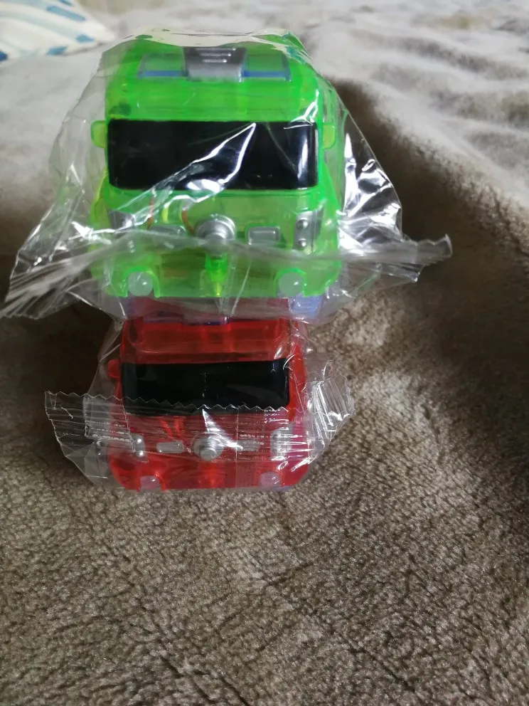 Отличные машинки, светят, ездят. подошли к гибкому треку 1Toy. Намного качественнее тех, что были в комплекте с треком или продаются на Ozon. Работают на двух батарейках АА. продавцу спасибо, заказывал 3 машинки и лифт. Отправление пришло EMS - домой принёс курьер.