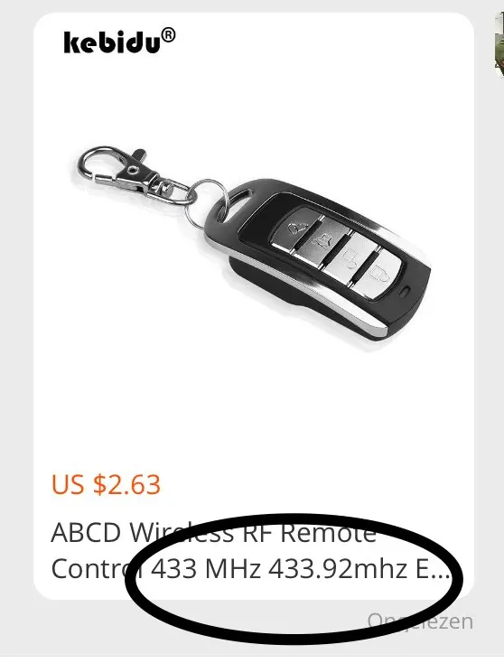 Пульт-ключ дистанционного управления для воротгаражадверей, 433.92 МГц, беспроводной, брелок, на батарейке