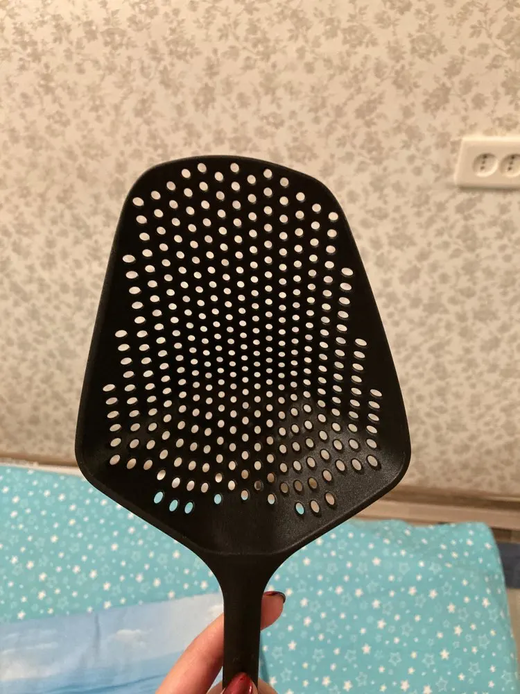 Покупала в подарок для мамы, довольны обе! Ей всё понравилось, а я сначала говорю большое спасибо продавцу за быструю отправку заказа и курьерам - за её доставку! Лопаточка-сито достаточно вместимая, прочная и удобная. Легко пользоваться, легко мыть и сушить! Так что, и товар, и продавца очень рекомендую и ещё раз говорю ему большое спасибо! Мира, добра и благополучия! Да, и здоровья, конечно же всем и им, и нам! :-)