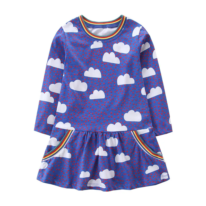 Рождественские платья принцессы для девочек; Вечерние платья-пачки из хлопка с принтом облака; Новый дизайн; Модные праздничные платья для девочек