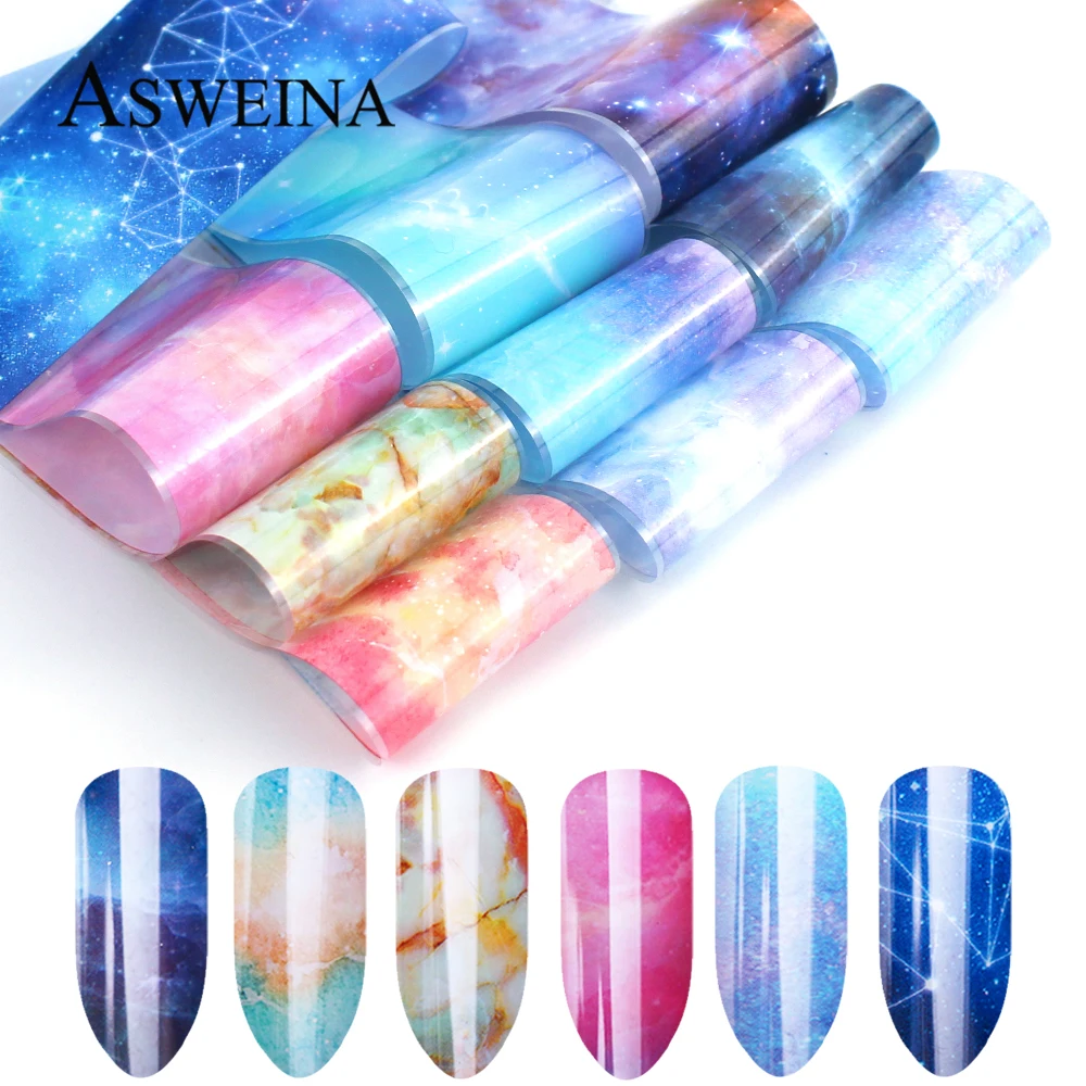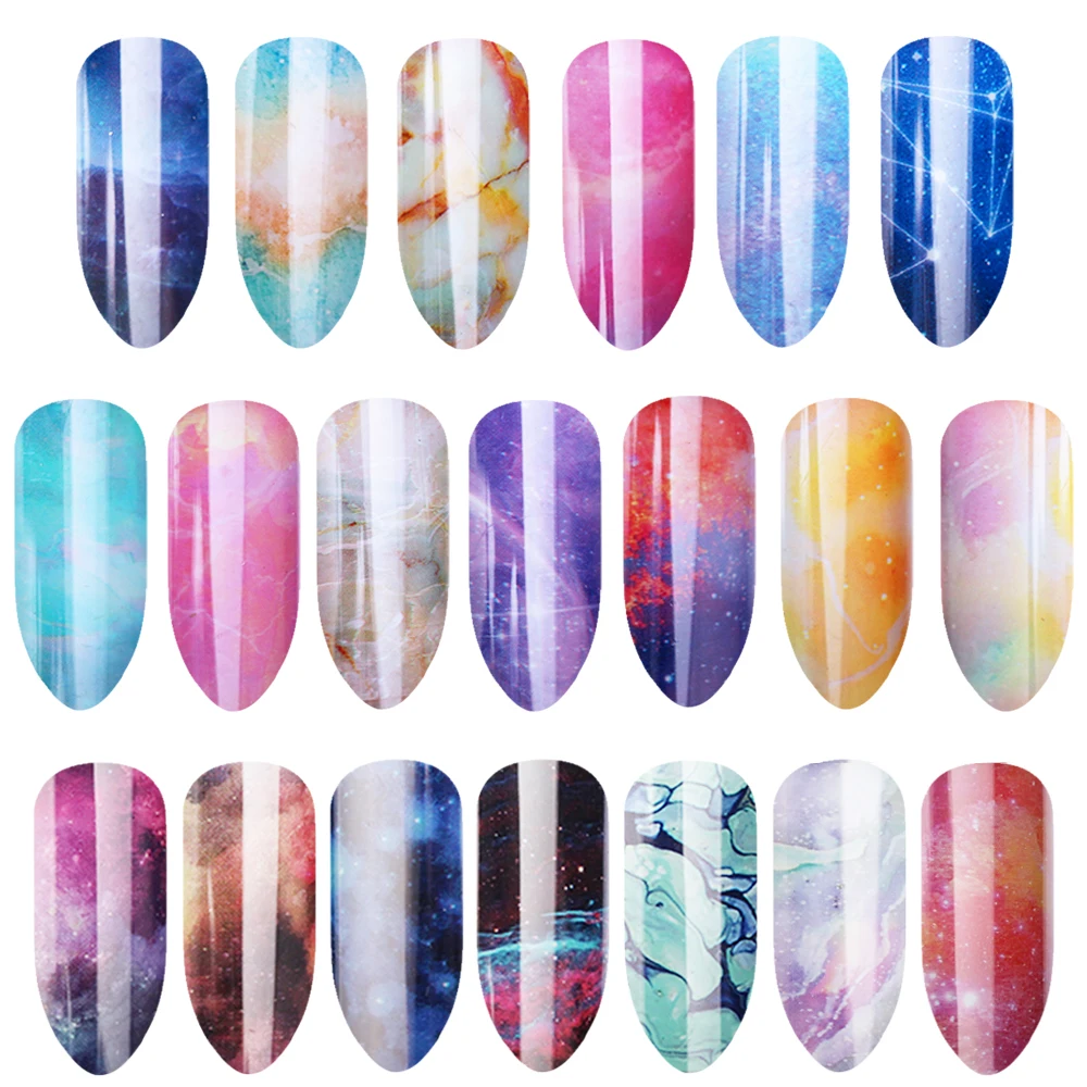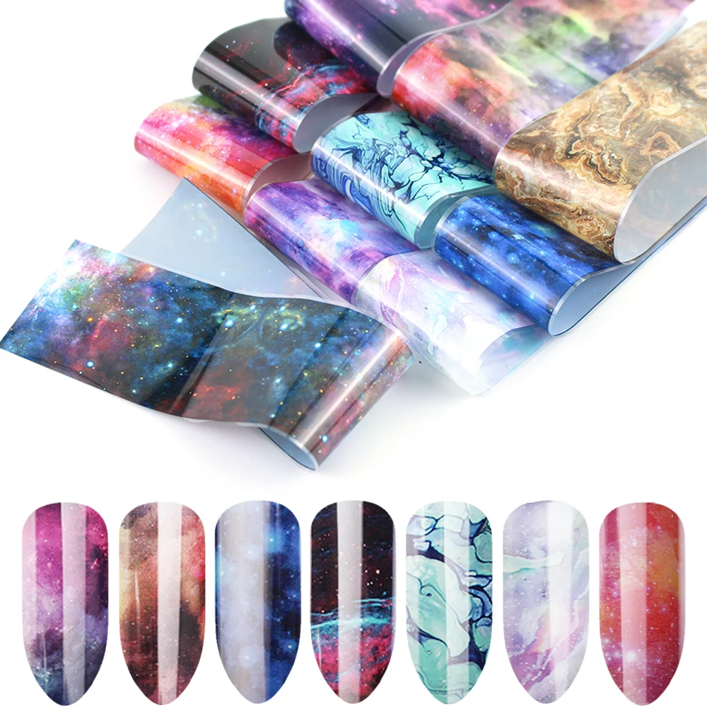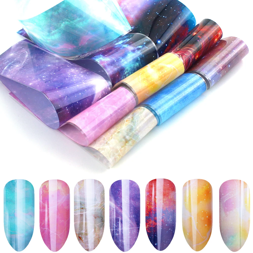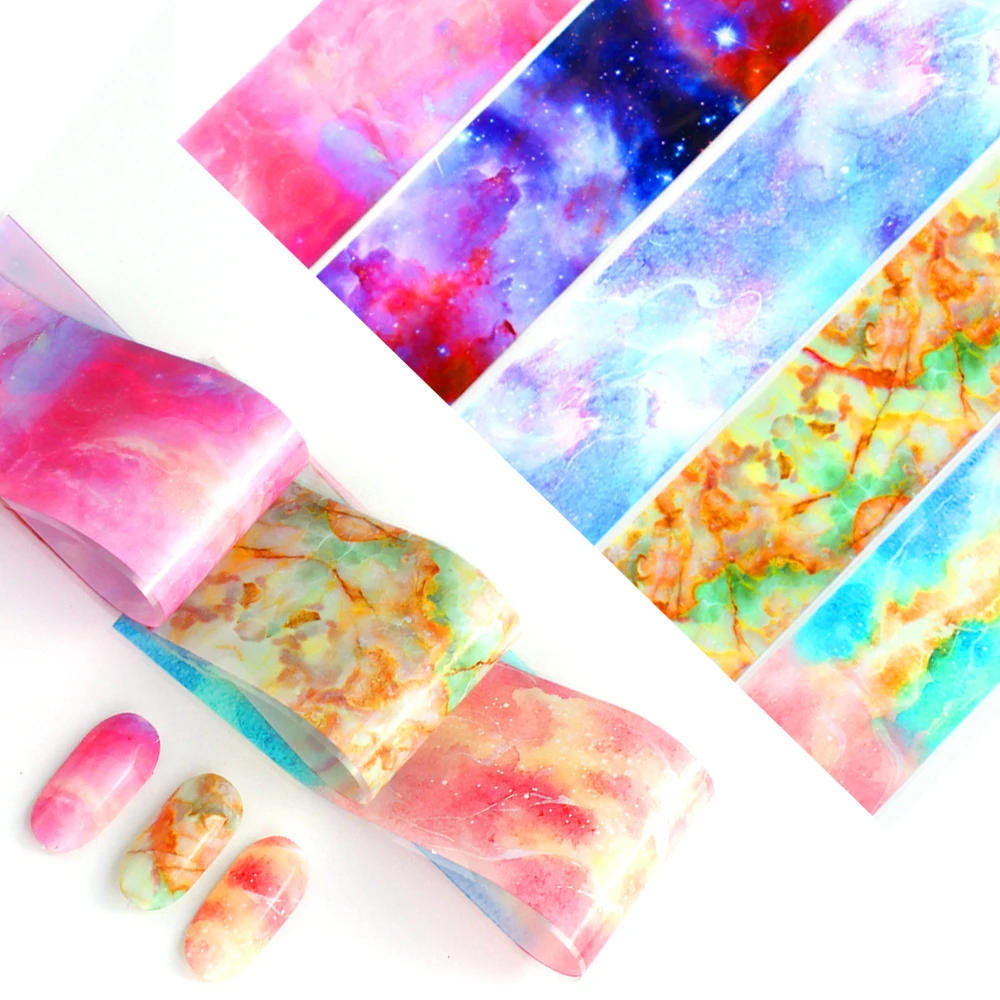 10 шт., фольга для перевод на ногти, набор голографических блестящих красочных наклеек в виде неба, смешанный дизайн, лак для ногтей, слайдер, украшение для ногтей
