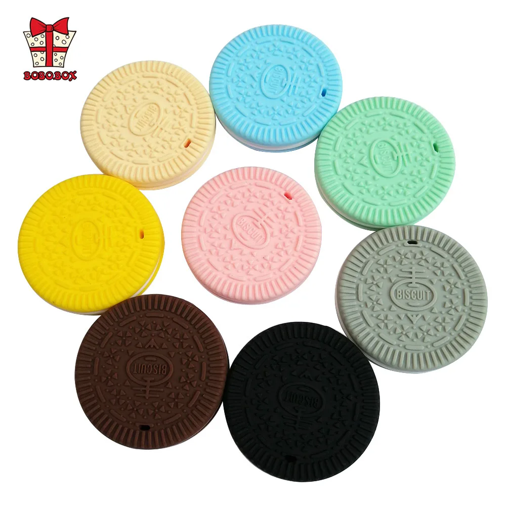 BOBO.BOX, 10 шт., Детские Силиконовые Прорезыватели, BPA, Бесплатная игрушка для прорезывания зубов, печенье, подвеска, ожерелье, пищевое детское кольцо, висячая игрушка для прорезывания зубов