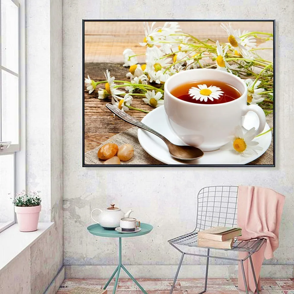 Алмазная вышивка с изображением кофе, квадратные Стразы