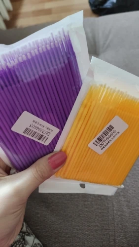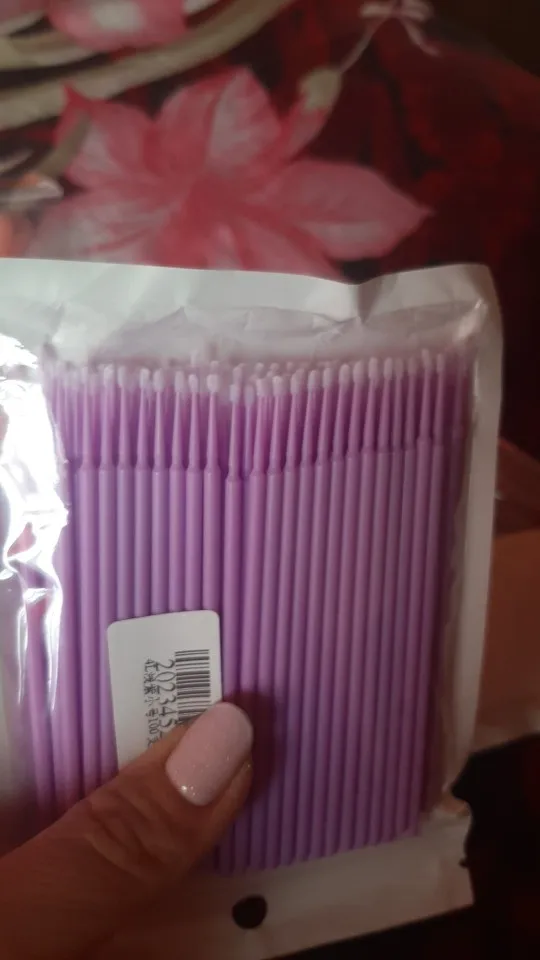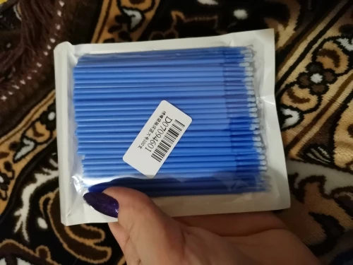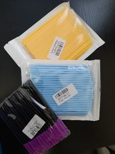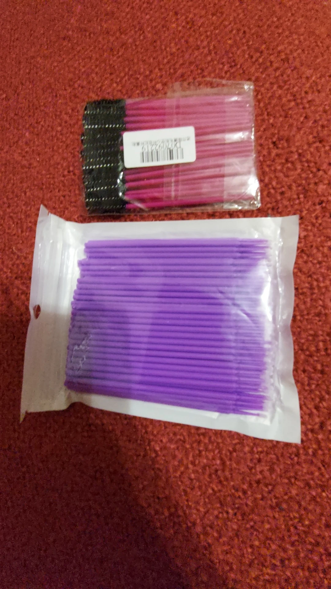 Заказывала на пробу, посмотреть чем отличаются. Оказывается, (надо ещё и читать внимательней, всё написано) разный размер у микробрашей. Разноцветные на вид выглядят очень дешёвско. Фиолетовые (самые маленькие) лучше всех. Использую в маникюре для остановки крови капромином, иногда подтереть затёки. Но не очень удобно, потому что пушистые махрушки.