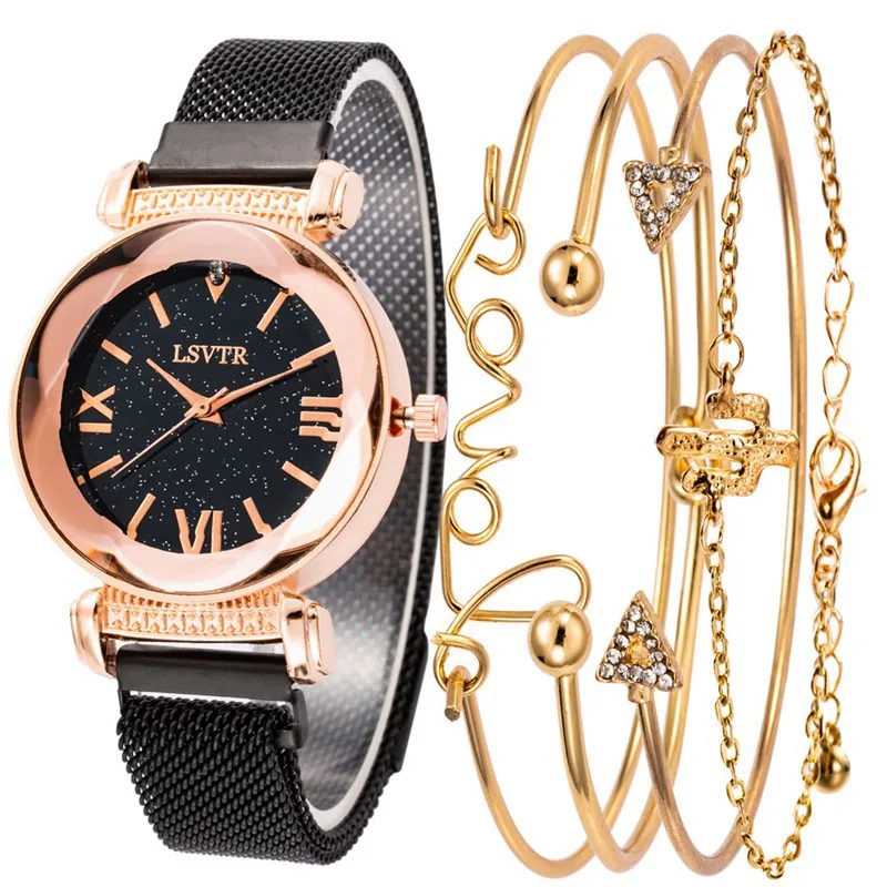 5 шт.компл. Роскошные Брендовые женские часы Звездное небо с магнитной застежкой модные часы для молодых женщин женские часы браслет Kol Saati Reloj