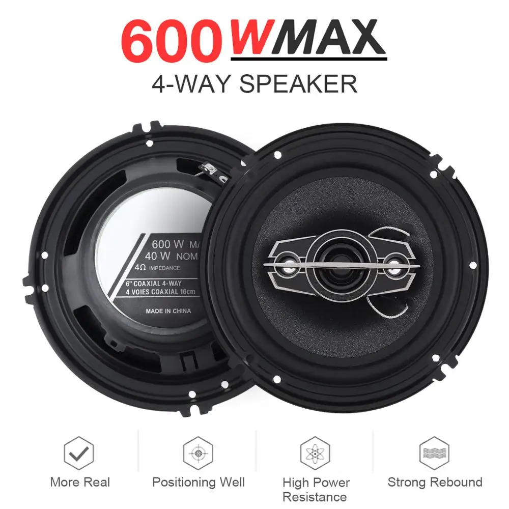 Динамики автомобильные коаксиальные, 6,5 дюйма, 600 Вт, 4 канала, 12 В, полнодиапазонные, Hi-Fi, неразрушающая установка, 2 шт.