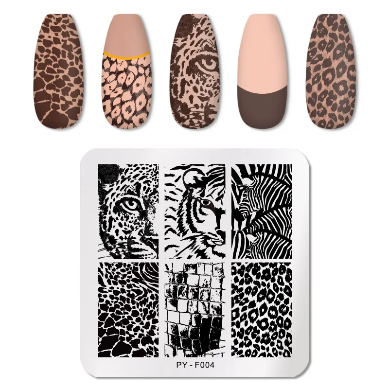 Квадратные пластины для стемпинга PICT YOU 6 см * 6 см, леопардовый рисунок, животные, шаблоны трафаретов, инструменты, нержавеющая сталь, штамп для дизайна ногтей