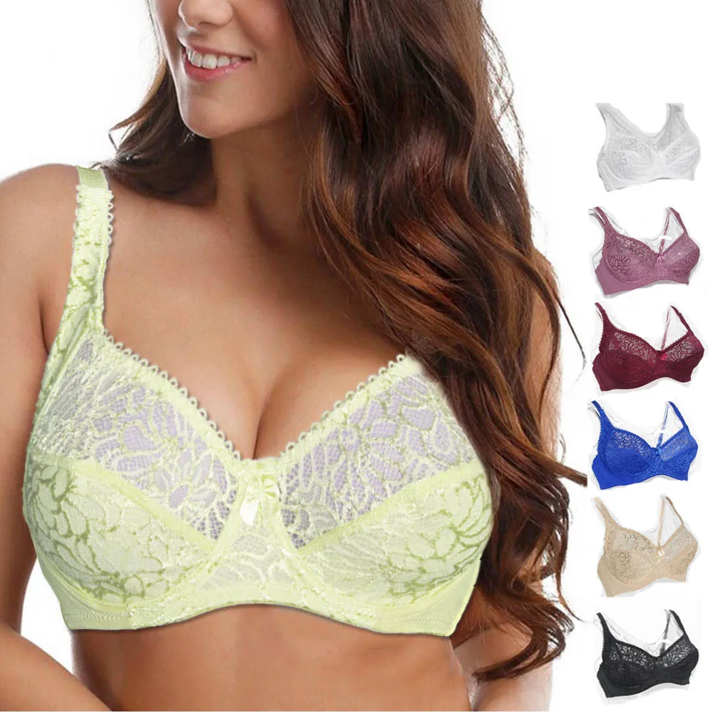 Бюстгальтеры больших размеров для женщин, кружевное нижнее белье без подкладки, сексуальное нижнее белье на косточках с цветочной вышивкой, бюстгальтер без косточек размера плюс
