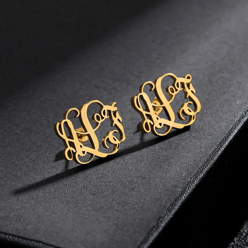 Женские серьги-гвоздики из нержавеющей стали золотого цвета с буквенным принтом