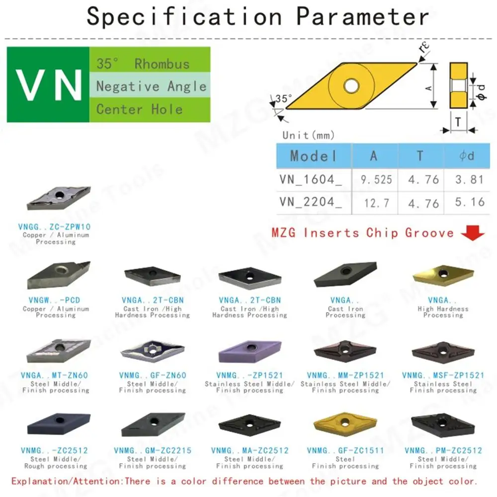 MZG 10 шт. VNMG 1604 04 MT ZN60 токарный резец Cermet средние и тонкие стальные детали с хорошей отделкой ЧПУ карбидные вставки