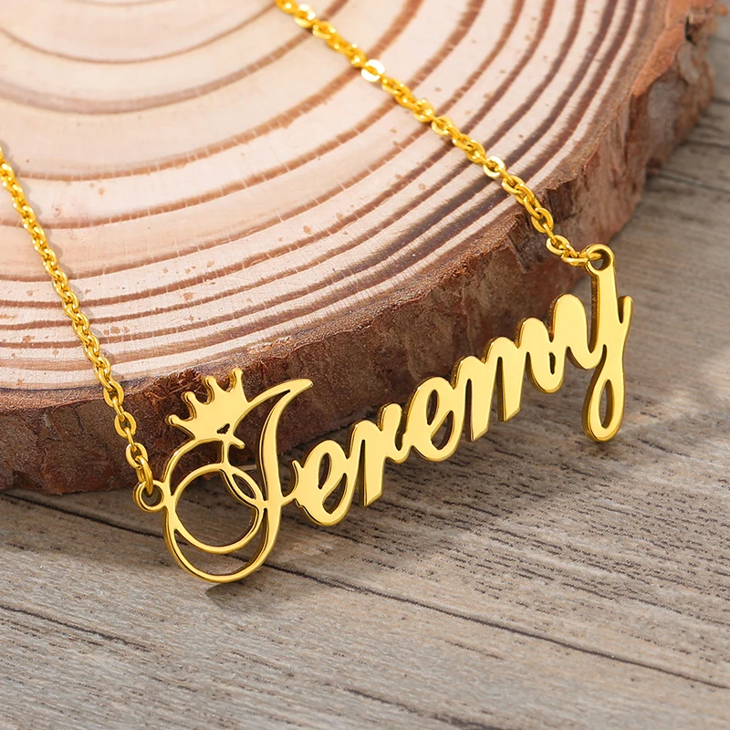 Женское Ожерелье с именной короной, ожерелье из нержавеющей стали, кулон-табличка с именем, аксессуары для ювелирных изделий