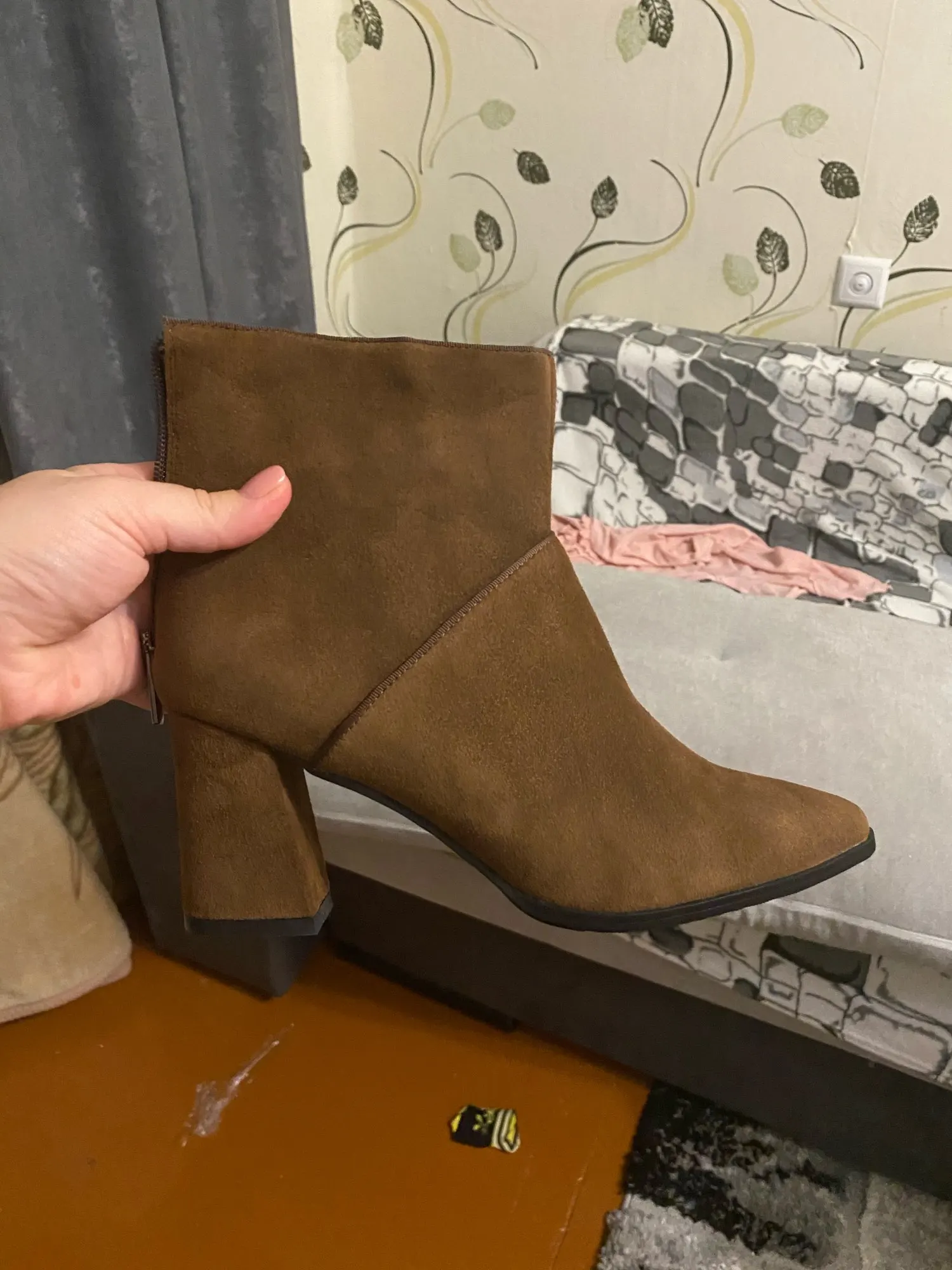 Аккуратные ботиночки были аккуратно упакованы и доставлены за 3 недели. Запах при распаковке был- «погуляли» на балконе ночь и все выветрилось. По поводу натуральности замши и кожи внутри... ну под сомнением. И самое главное: на длину стопы 24,5 в таблице соответствует 39 размер. По факту - ботинки конкретно великоваты и в длину, и в ширину( даже со стелькой). К счастью, подошли по размеру коллеге и были быстро пристроены новой хозяйке)))