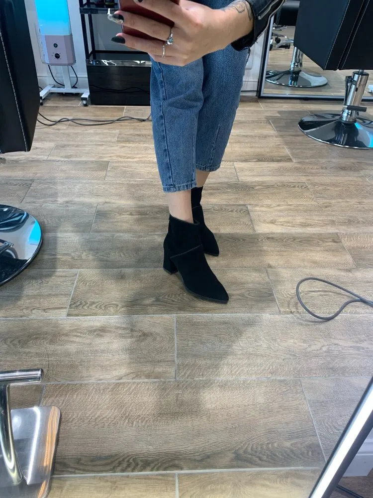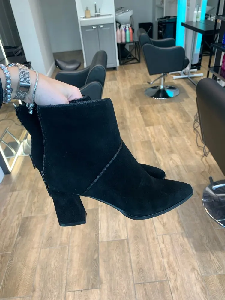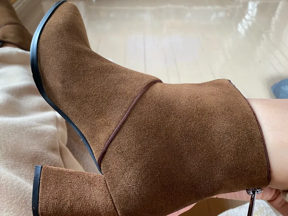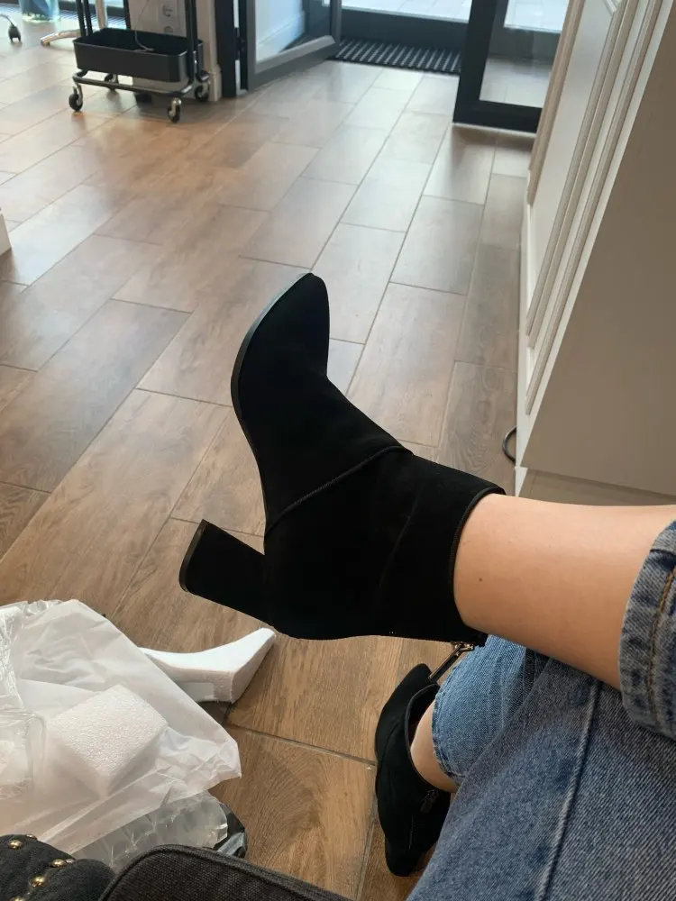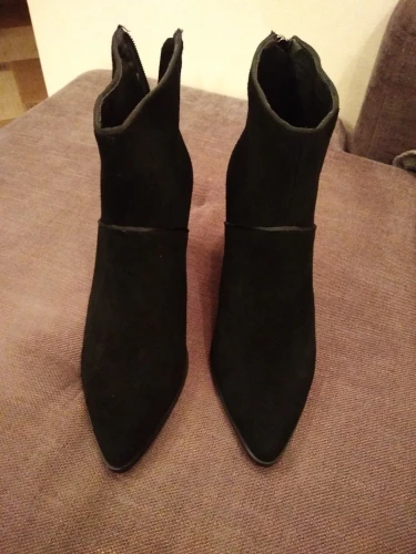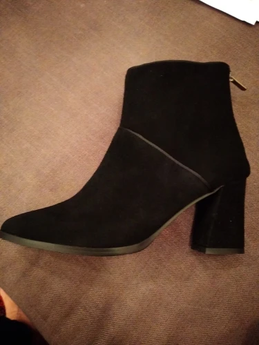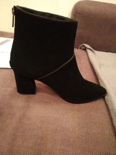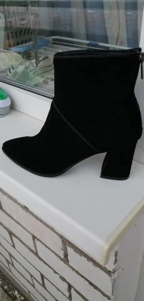 ботинки хороши, выполнены качественно, замша, каблук удобный, на стопу 24 см подошел 38р, с учетом плотного носочка