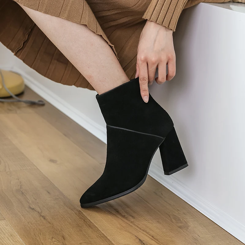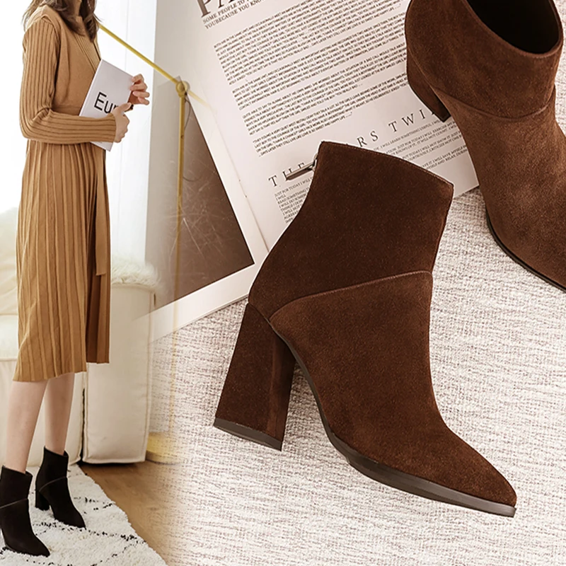 Ботильоны женские зимние из натуральной кожи, длина стопы 22-размера плюс см, с острым носком и боковой молнией, 26,5