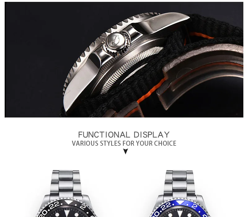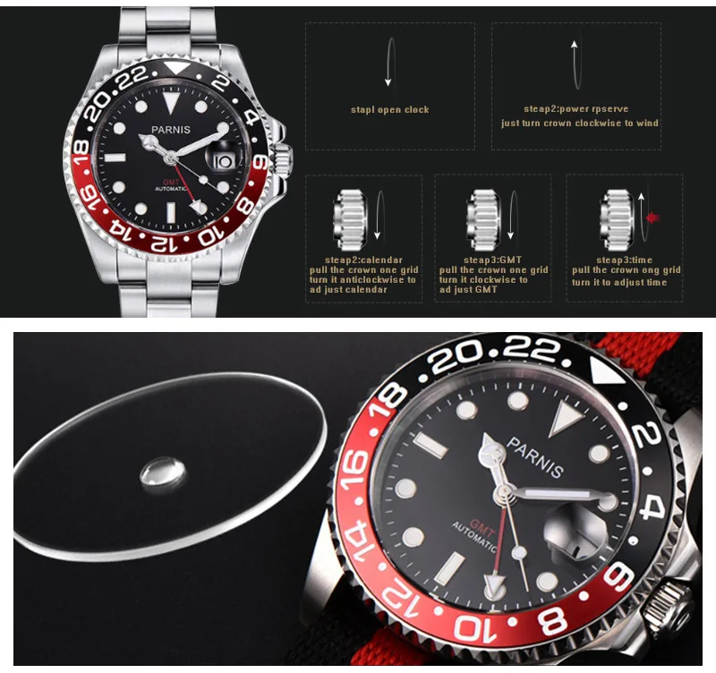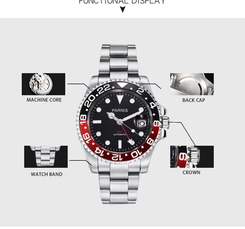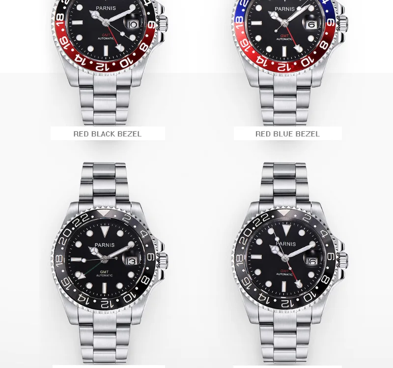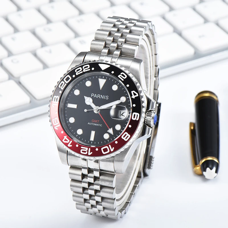 Parnis 40mm часы мужские спортивные механические часы GMT черный, к...