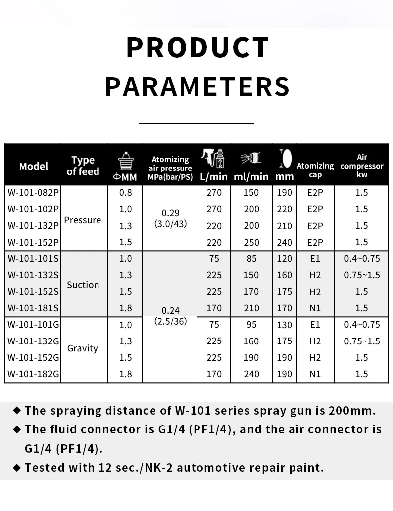 Пистолет-распылитель W101 HVLP для автомобильной мебели, модель 1,01,31,51,8 мм, Япония
