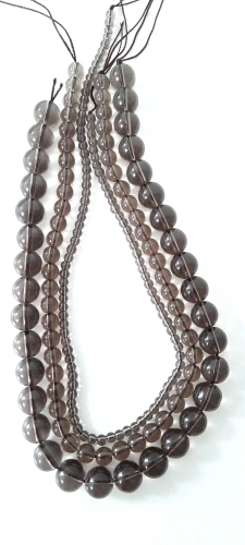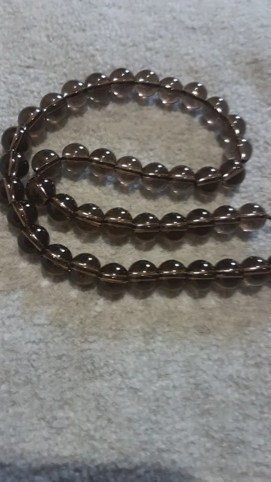 От раухтопаза здесь только цвет - Smoky. Бусина легко царапается необработанным камнем аметиста. Так что это стекло, продавец это и не сильно скрывает :))) Надо лишь внимательно читать описание. Когда покупала, понимала, что за эту цену не может быть такой прозрачности настоящий дымчатый кварц, так что была готова. Сами бусины очень красивые! Если важна просто красота и декоративность, то рекомендую.