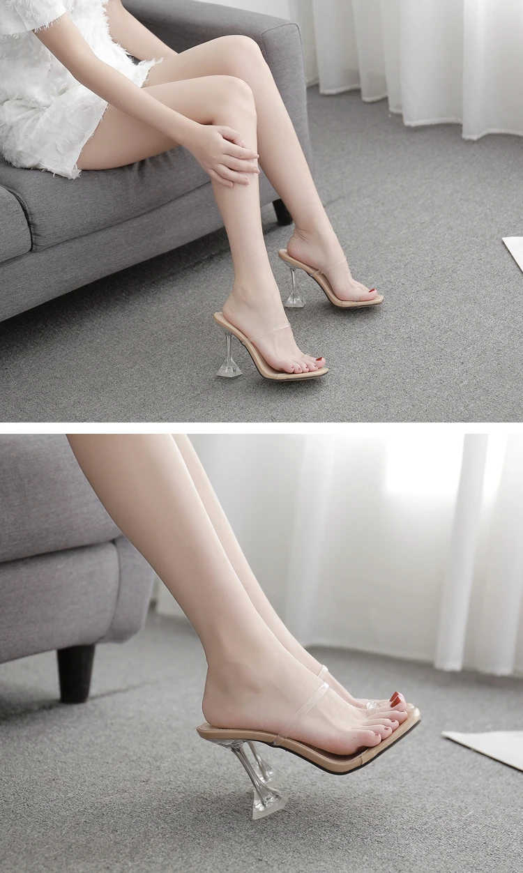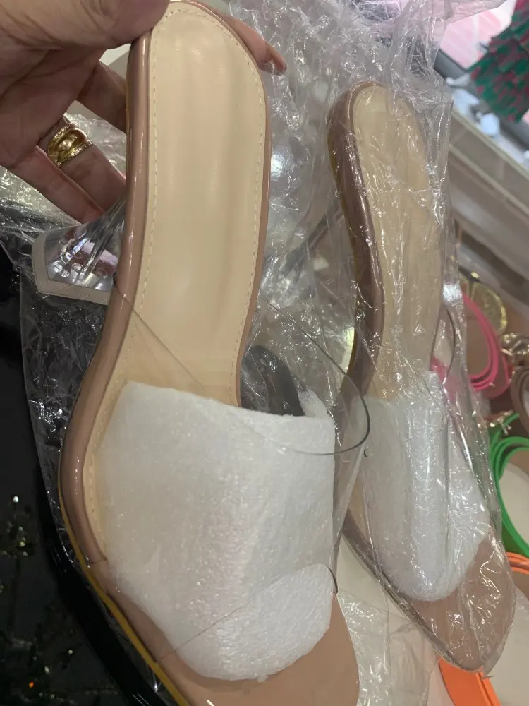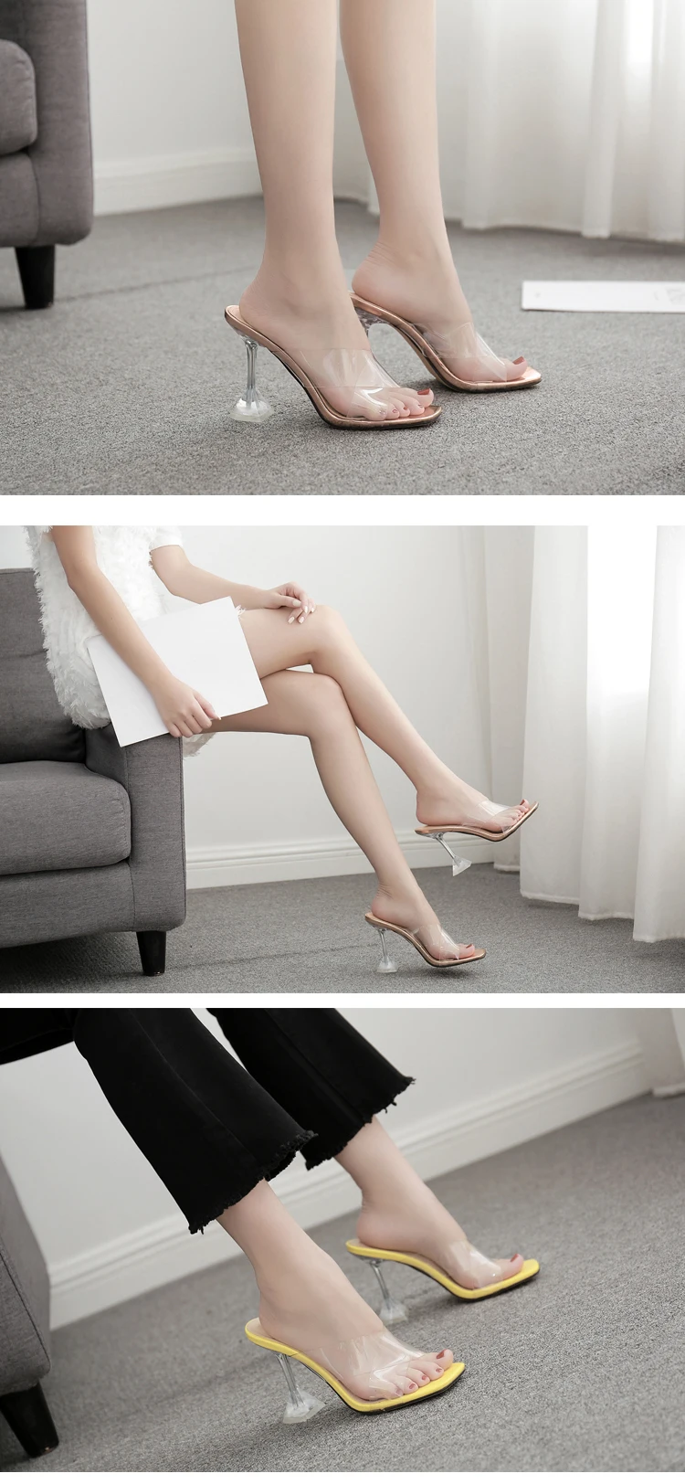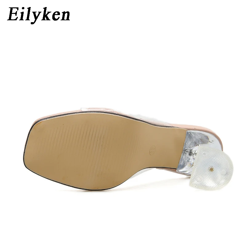 Eilykenжелеобразные женские тапочки оранжевого и серебристого цвета из ПВХ; Прозрачные шлепанцы на высоком каблуке с открытым носком; Прозрачные Босоножки на каблуке; Размер 42