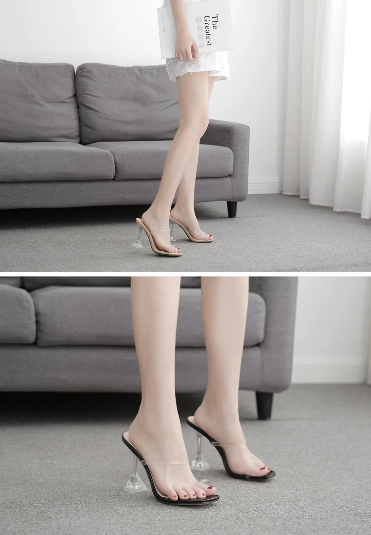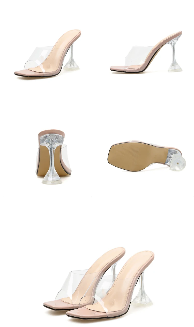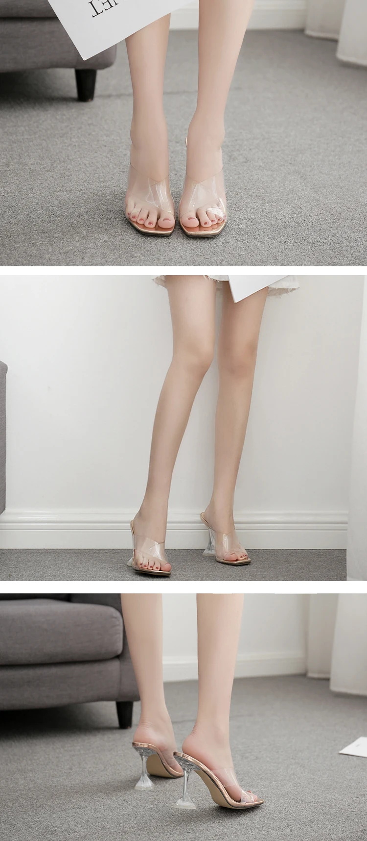 Eilykenжелеобразные женские тапочки оранжевого и серебристого цвета из ПВХ; Прозрачные шлепанцы на высоком каблуке с открытым носком; Прозрачные Босоножки на каблуке; Размер 42