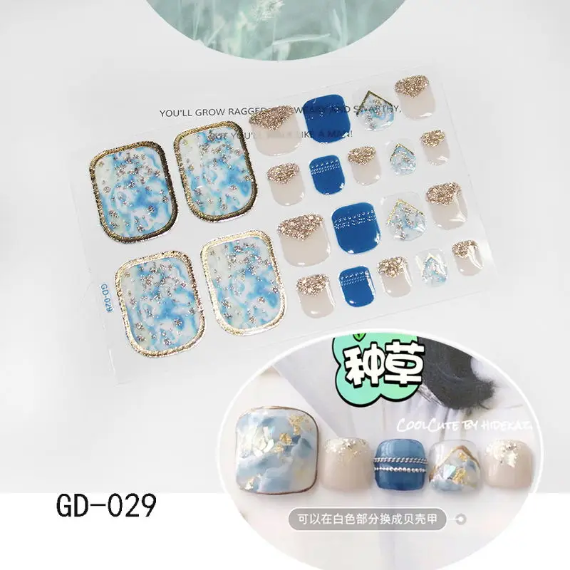 22 наконечника, Популярная Наклейка для ногтей на ногах, полное покрытие, водостойкая наклейка для ногтей, наклейка для ногтей сделай сам