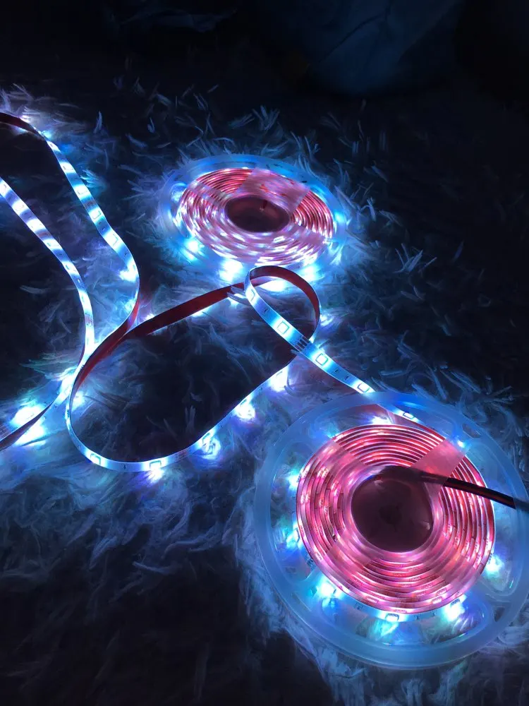 Товар отличный, ждала прям с нетерпением проверяя каждый день) так как давно мечтала приобрести такую ленту в комнату. Пришло все упакованное в защитном пакете, все целое и как видите все горит. Заказывала 10 м пришло две катушки, по 5 м я так понимаю , не мерила, позже замерию. Единственное что испугало одна катушка не горела , ни в какую не хотела загораться и я уже разочаровалась, у неё контакт отошёл немного , но я его вставила обратно и катушка уже подала признаки жизни. Так как все было защищено очень хорошо ,то думаю это уже при запаковке было чуть поломано. А так я в восторге , советую продавца!)