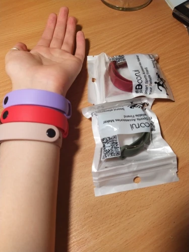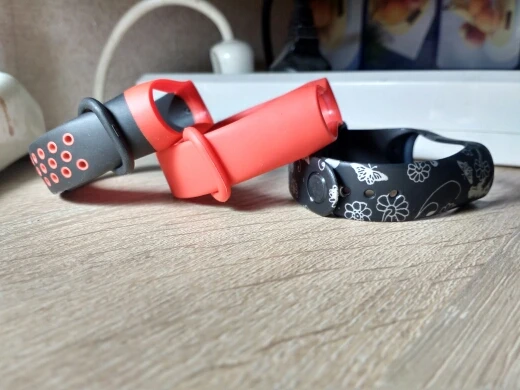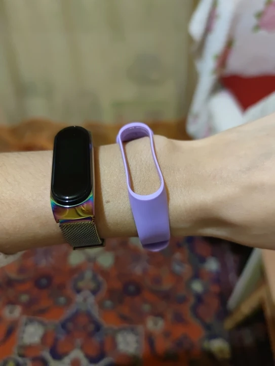 браслеты пришли в одной посылке, продавец положил купон н 1 доллар) качество хорошее, цвета яркие, с цветком очень нежно смотрится, но залезли часы mi band 4 с трудом.