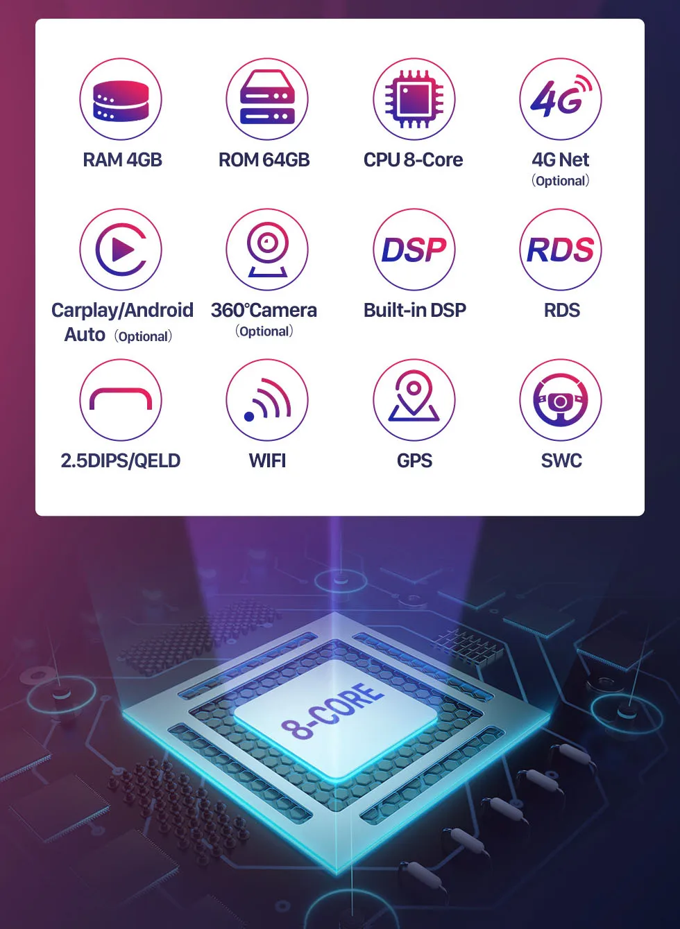 Поддержка камеры 360 градусов RDS, 4G& WiFi/загрузка приложений/3D навигация/радио тюнер/Bluetooth/Двойная зона/управление файлами/HD 1080P видео/Управление рулевым колесом/зеркальная Ссылка/OBD2/DVR/резервная камера/MP3/USB/SD и т. Д.