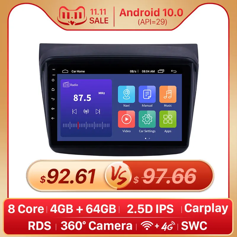 Seicane 9 "2din Android 10,0 Автомобильный GPSДля MITSUBISHI PAJERO Sport/L200/2006 + Triton/2008 + PAJERO 2010Поддержка OBD2 Carplay DVR
