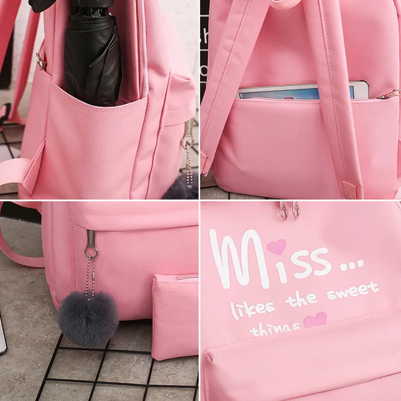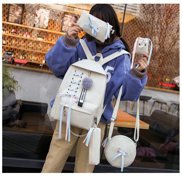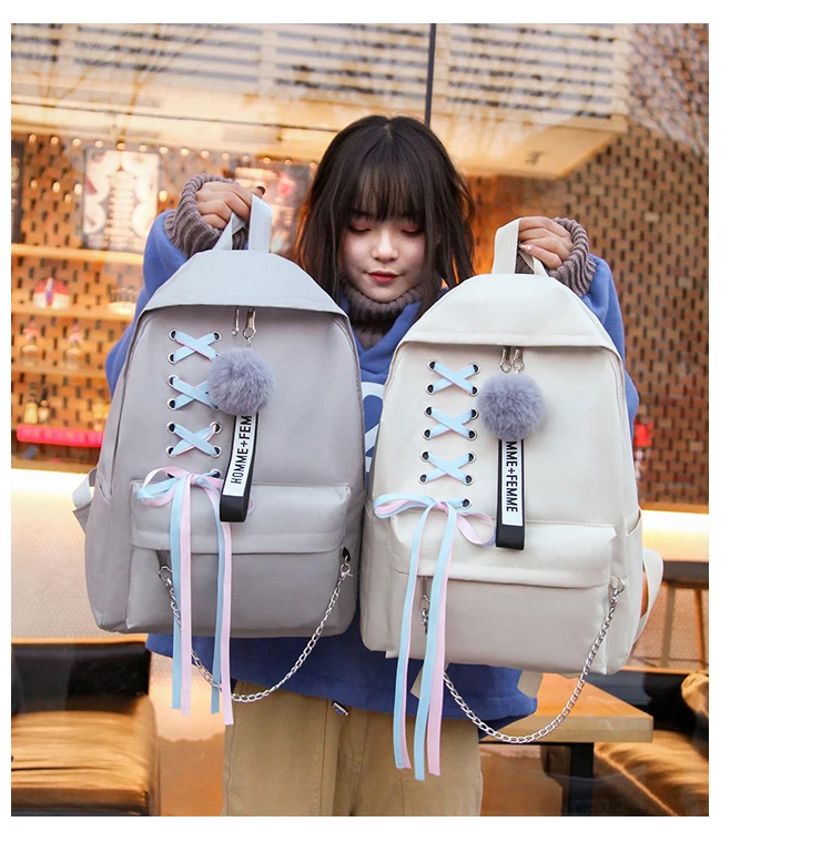Школьная сумка для девочек-подростков, однотонный рюкзак, школьная сумка для женщин, сумка для студентов, черный кружевной рюкзак пачки с бантом, 2019