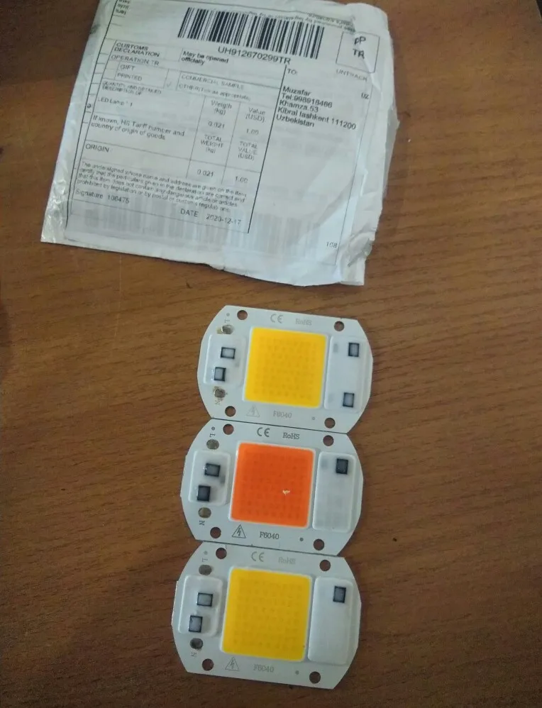 Товар прибыл быстрее, чем ожидалось. Я испытал 1 cob, так как в данный момент нет больше радиаторов. Все в хорошем порядке. Точно восстановите и скоро закажете больше, если мои Гидропонные растения понравятся световому спектру.