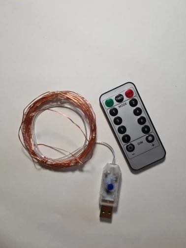 Это медный кабель со светодиодами. Usb-разъем имеет кнопку, которая позволяет менять мигание в разных формах. Пульт дистанционного управления поставляется без батареи. Позволяет включать, выключать, менять режимы мигания или фиксированного освещения и увеличивать и уменьшать интенсивность света. Хорошо, хотя медный провод кажется хрупким, его нельзя много двигать. Доставка была быстрой, Экономичная Цена, поэтому доволен покупкой. Он будет использоваться для украшения или окружающей среды, для плитки, для освещения за телевизором...