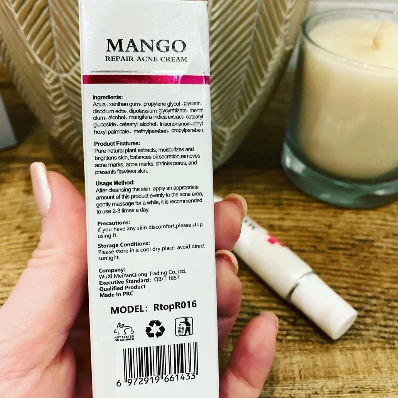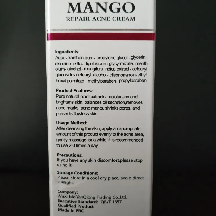 Крем предназначен для увлажнения, очистки и отбеливания кожи лица. В состав данного продукта входит экстракт манго и различные спиртовые добавки. Тюбик с кремом небольшой, пластиковый. Масса продукта 15 г. Крем средней плотности, белого цвета, с приятным ароматом. После нанесения быстро впитывается, следов и липкости не оставляет. Крем следует наносить на очищенную, проблемную кожу лица. Можно использовать 2-3 раза в день. По эффекту: хорошо увлажняет кожу и снимает раздражения и покраснения.