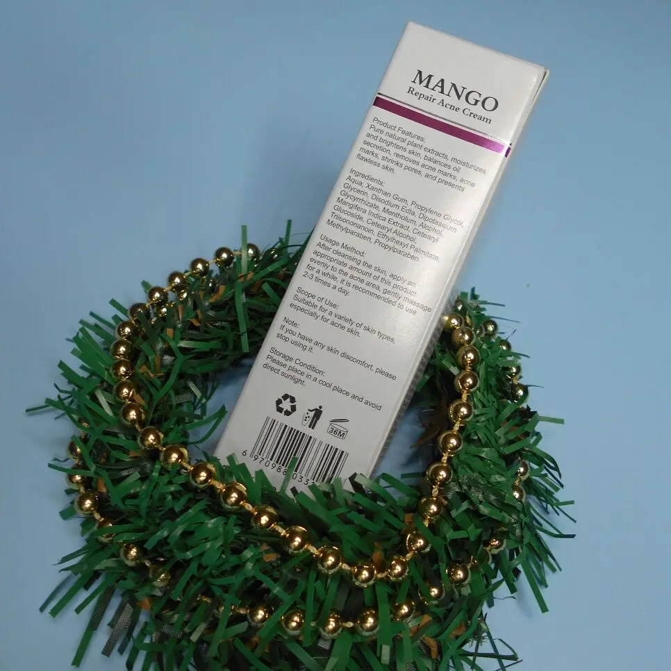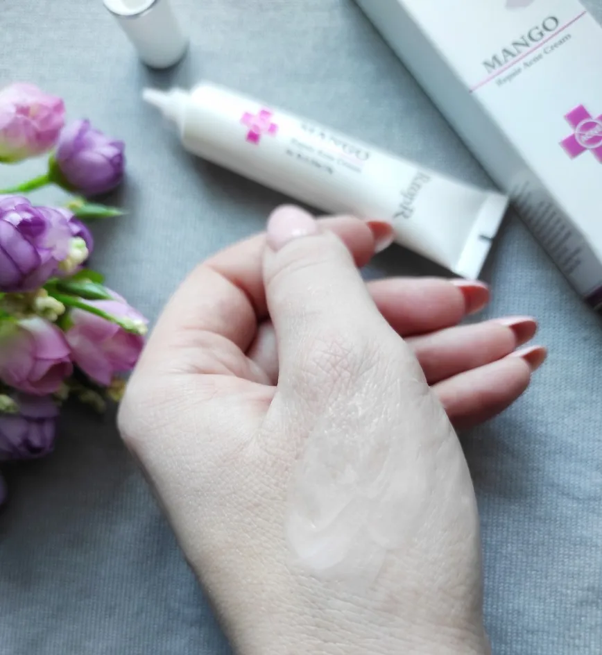 Крем для лечения акне с экстрактом манго, который борется с несовершенствами, оздоравливает, предохраняет эпидермис от воздействия ультрафиолета, осветляет пигментацию, восстанавливает, способствует интенсивной регенерации. Имеет легкую кремово-гелевую текстуру, за счет чего легко распределяется по коже, моментально впитывается, не оставляя жирного блеска. Утром и вечером, после очищения и тонизирования, наношу точечно - на воспаления, по мере необходимости, результат заметен после первого применения, крем действительно обладает отличным противовоспалительным действием. Цвет белый, запах отсутствует, что безусловно нравится, объем – 15 г. Доставка в Россию - 1 месяц. Заказ был получен в целостности и сохранности, упакован аккуратно, защитная слюда на коробке имелась, все ок.