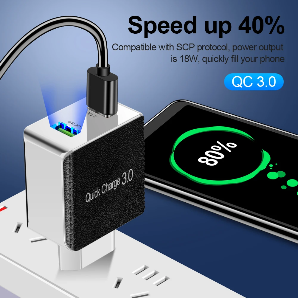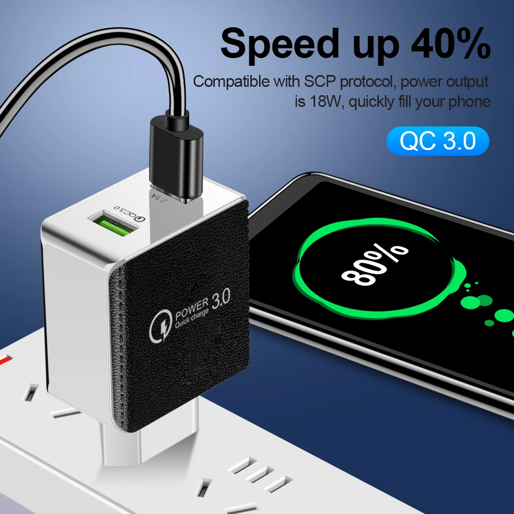 Настенное зарядное USB-устройство для телефона, 18 Вт, QC3.0, быстрая зарядка, вилка стандарта ЕС и США для Samsung S9, Xiaomi Mi Mix 3, быстрая зарядка для Huawei