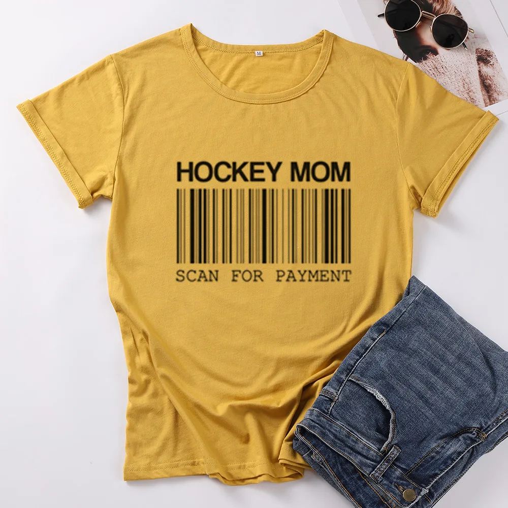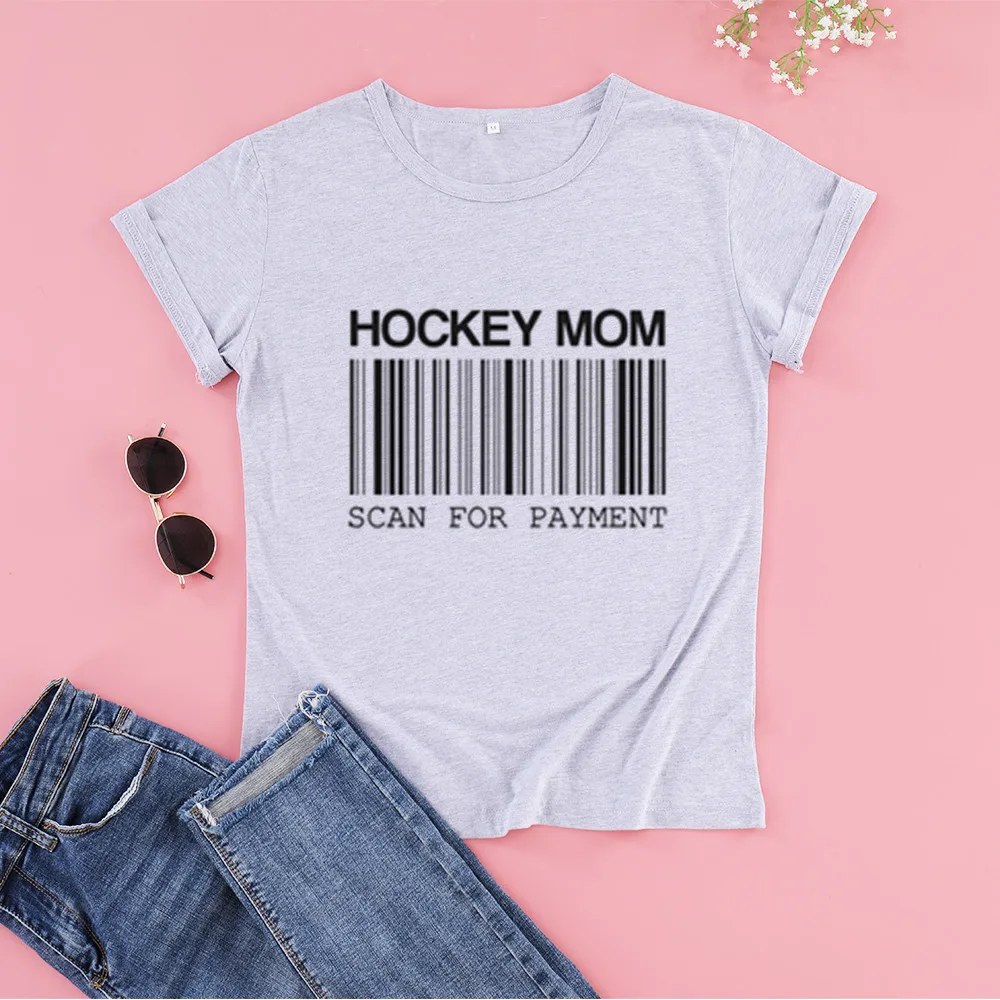 Женская футболка с надписью HOCKEY MOM SCAN для оплаты, забавная креативная хлопковая футболка с коротким рукавом, футболка для мамы, harajuku, одежда