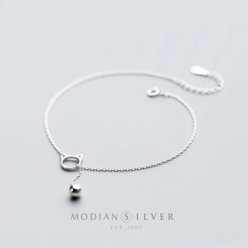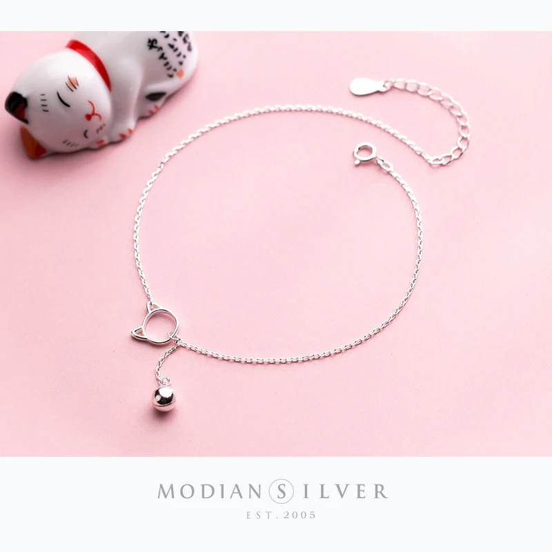 Женские браслеты Modian из стерлингового серебра браслет с колокольчиками пробы с изображением кота на удачу 100%, ювелирные изделия S925