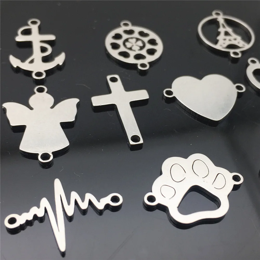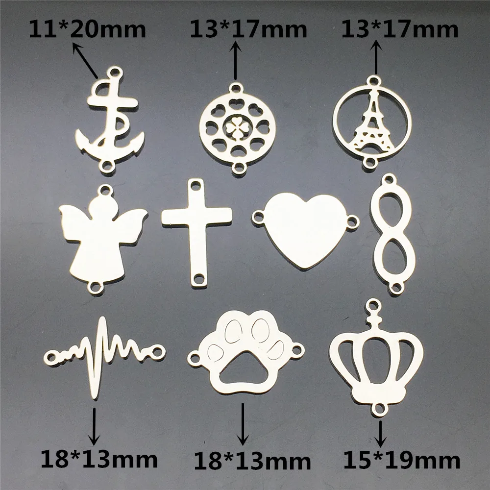 Двойные разъемы из нержавеющей стали, 10 шт., подвеска ангельский якорь в форме сердца, подвеска для браслета сделай сам