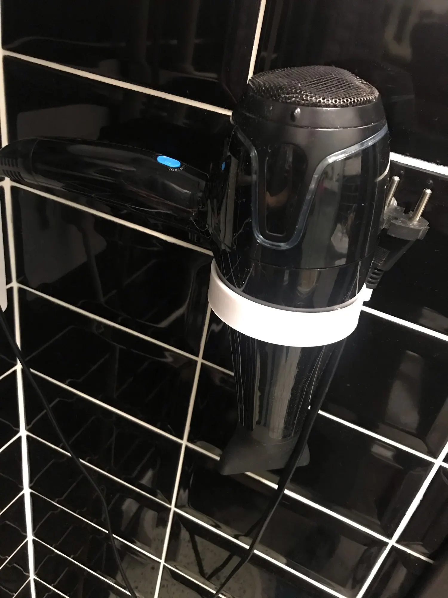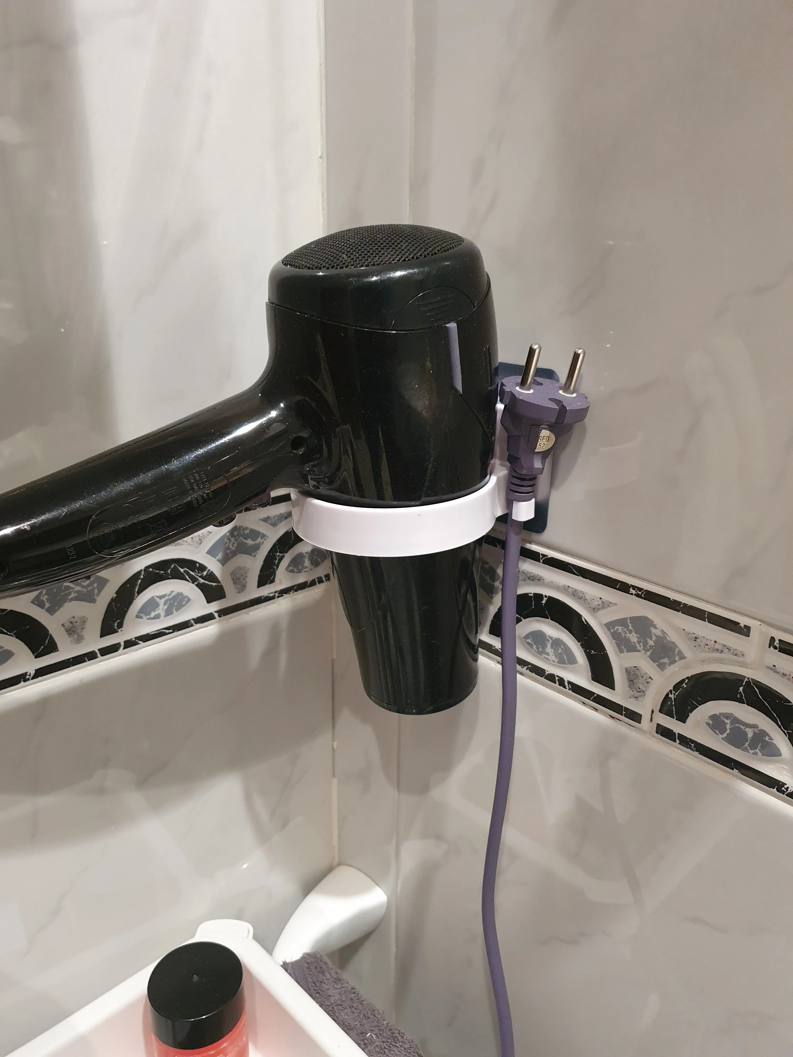 Оказалось очень удобной и крепкой штукой. Повесила свой фен скраю около розетки, не мешает висит теперь и стильнентко смотрится